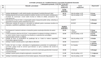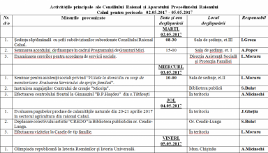 Noutăți Activităţile principale ale Consiliului Raional şi Aparatului Preşedintelui RaionuluiCahul pentru perioada 02.05.2017 – 05.05.2017