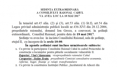 Noutăți Activităţile principale ale Consiliului Raional şi Aparatului Preşedintelui Raionului Cahul pentru perioada 15.05.2017-20.05.2017