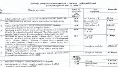 Noutăți Activitățile principale ale Consiliului Raional și Aparatului Președintelui Raionului Cahul pentru perioada 03.04.2017- 09.04.2017