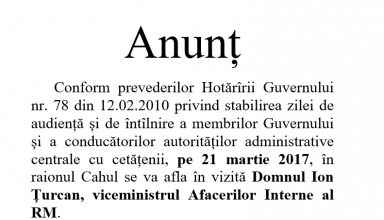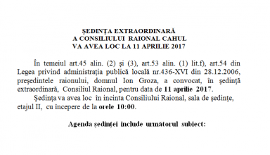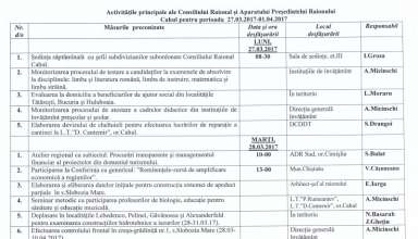 Noutăți Activitățile principale ale Consiliului Raional și Aparatului Președintelui Raionului Cahul pentru perioada 27.03.2017- 01.04.2017