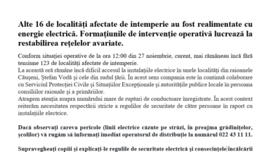 Noutăți Alte 16 de localități afectate de intemperie au fost realimentate cu energie electrică. Formațiunile de intervenție operativă lucrează la restabilirea rețelelor avariate.