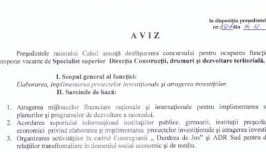 ANUNȚ! FUNCȚIE VACANTĂ